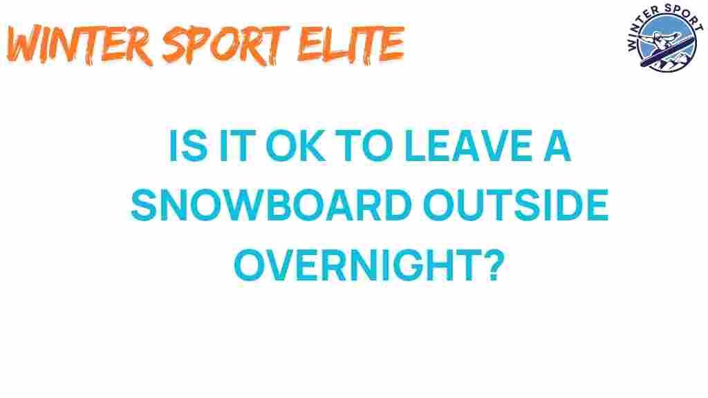 Taking care of your snowboard is essential for maximizing performance and longevity. Leaving your snowboard outside overnight might seem harmless, but it exposes your gear to several risks such as temperature effects, moisture damage, and UV degradation. By following the maintenance tips outlined in this article, you can ensure that your snowboard remains in excellent condition, ready for your next adventure on the slopes. Remember, proper gear protection is key to enjoying snowboarding to its fullest, so invest the time in winter care and maintenance to prevent potential damage and costly repairs.